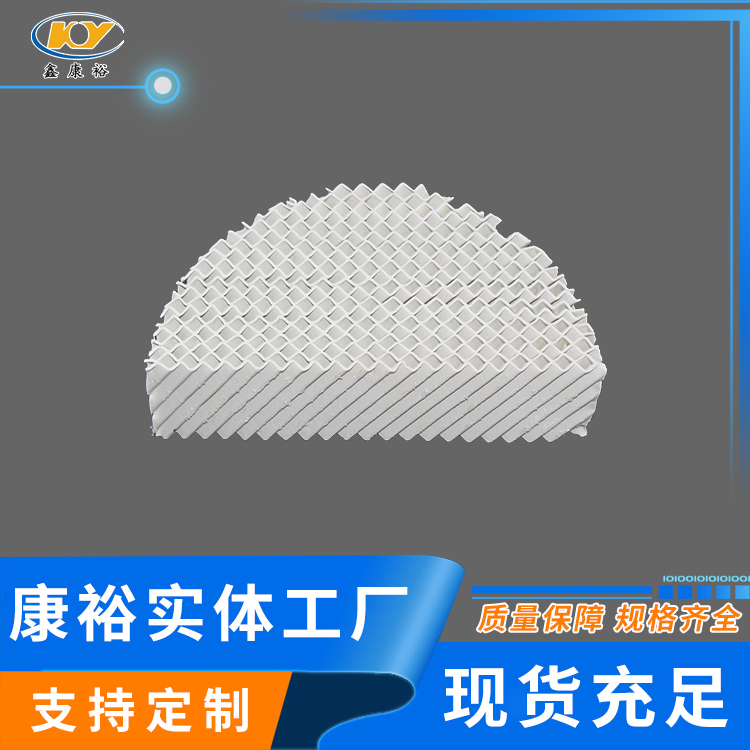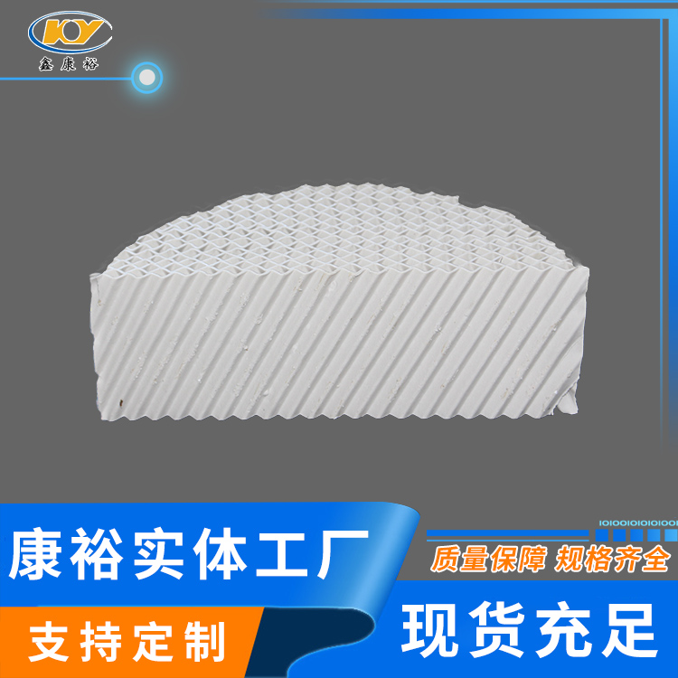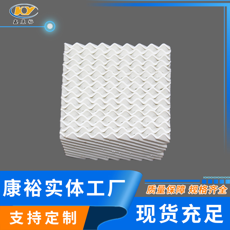 陶瓷波紋填料是一種新型規(guī)整填料,它是由許多具有相同幾何形狀的填料單元體組成。由于陶瓷的結(jié)構(gòu),具有良好的親水性能,其表面可形成極薄的液膜的湍動(dòng)及氣流的傾斜曲折通道能氣流但又不阻擋氣流使陶瓷填料能與金屬填料相匹敵,而其耐腐蝕、耐高溫性能金屬填料卻無法相比。表面結(jié)構(gòu)有良好的濕潤性能,能使液體加快流動(dòng)、使填料滯液量降至低。從而降低了過熱、聚合和結(jié)焦的機(jī)會。