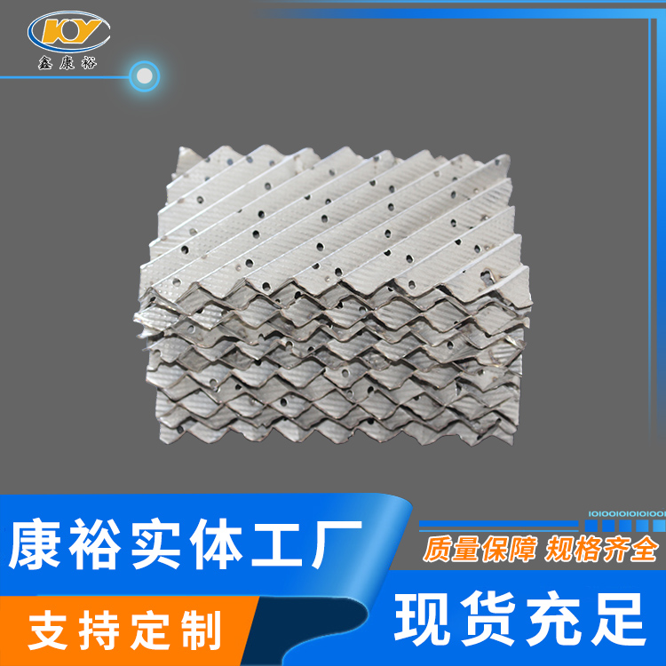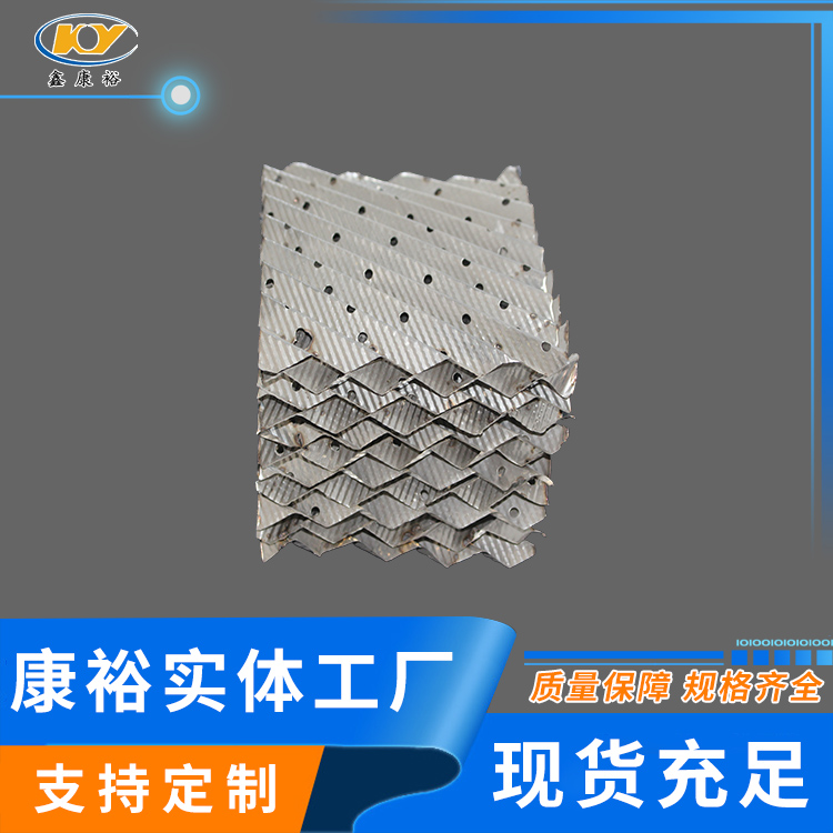 金屬孔板波紋填料(即金屬規(guī)整波紋填料、不銹鋼孔板波紋填料或稱金屬波紋填料)是在金屬薄板孔面打孔、軋制小紋、大波紋后組裝而成,具有阻力小,氣液分布均勻,效率高,通量大,放大效應(yīng)不明顯等特點(diǎn),應(yīng)用于負(fù)壓常壓和加壓操作。