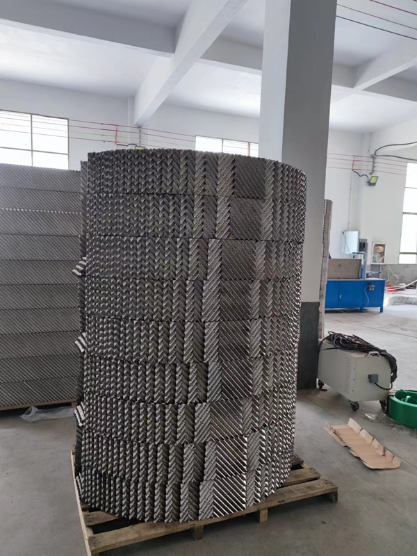 加工填料的塔徑范圍為φ150mm~12000mm以上。它是一種在塔內(nèi)按均勻幾何圖形排布,整齊堆砌的填料。它規(guī)定了氣液流路,改善了溝流和壁流現(xiàn)象,壓降可以很小,同時卻提供更多的比表面積,在同等容積中可以達(dá)到更高的傳質(zhì)、傳熱效果.還由于結(jié)構(gòu)的均勻、規(guī)則、對稱性,在與散裝填料具有相同的比表面積時,金屬孔板波紋填料的空隙率更大,具有更大的通量,綜合處理能力比板式塔和散裝填料塔大得多,因此以金屬孔板波紋為代表的各種通用型規(guī)整填料在工業(yè)中得到應(yīng)用。用金屬孔板波紋填料改造板式塔效果尤為明顯。通過精心設(shè)計(jì)、制造、安裝和認(rèn)真操作等,可以做到工業(yè)放大效應(yīng)不明顯。由于規(guī)整填料具有壓降低、通量大、分離效率高等優(yōu)點(diǎn),在精細(xì)化工、香料工業(yè)、煉油、化肥、石油化工等領(lǐng)域的眾多塔器內(nèi)得到廣泛應(yīng)用。如在原油油水、油氣、油水汽二相或三相分離器中使用效果良好,獲得用戶的一致好評。