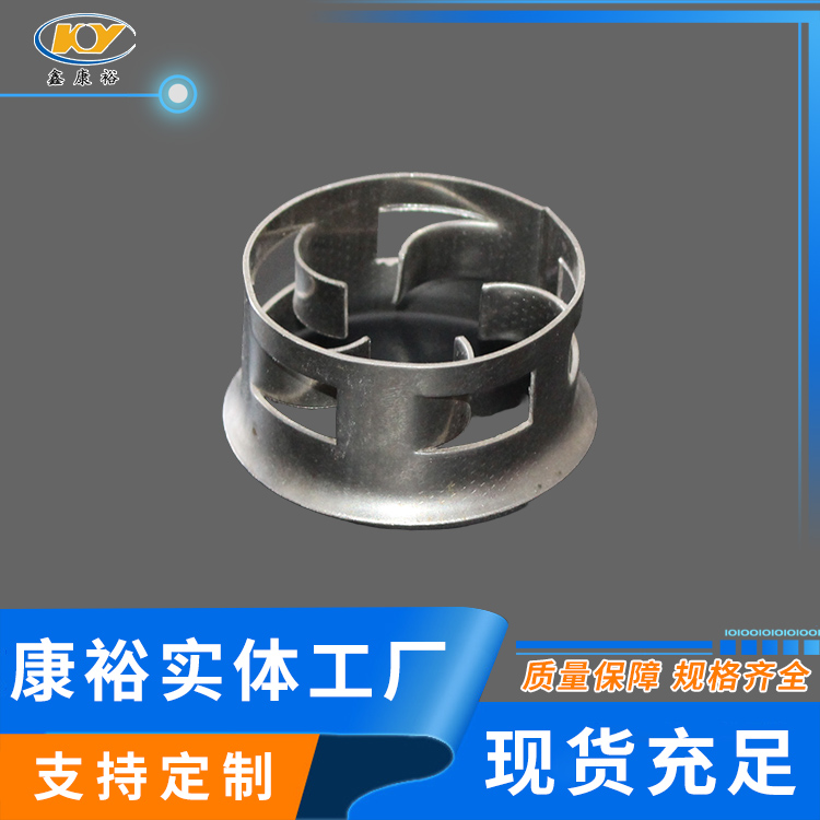 金屬階梯環(huán)至大限度保障其環(huán)面垂直而非平行,這種設計運用在傳質中優(yōu)勢更為突出。因為反應效率取決于接觸面的大小。平行面的設計會使環(huán)內側面接觸不到液體,從而形成干面。干面在傳質中幾乎不起作用,但是金屬階梯環(huán)的垂直設計大大降低干面的可能性,從而有效的提高效率。